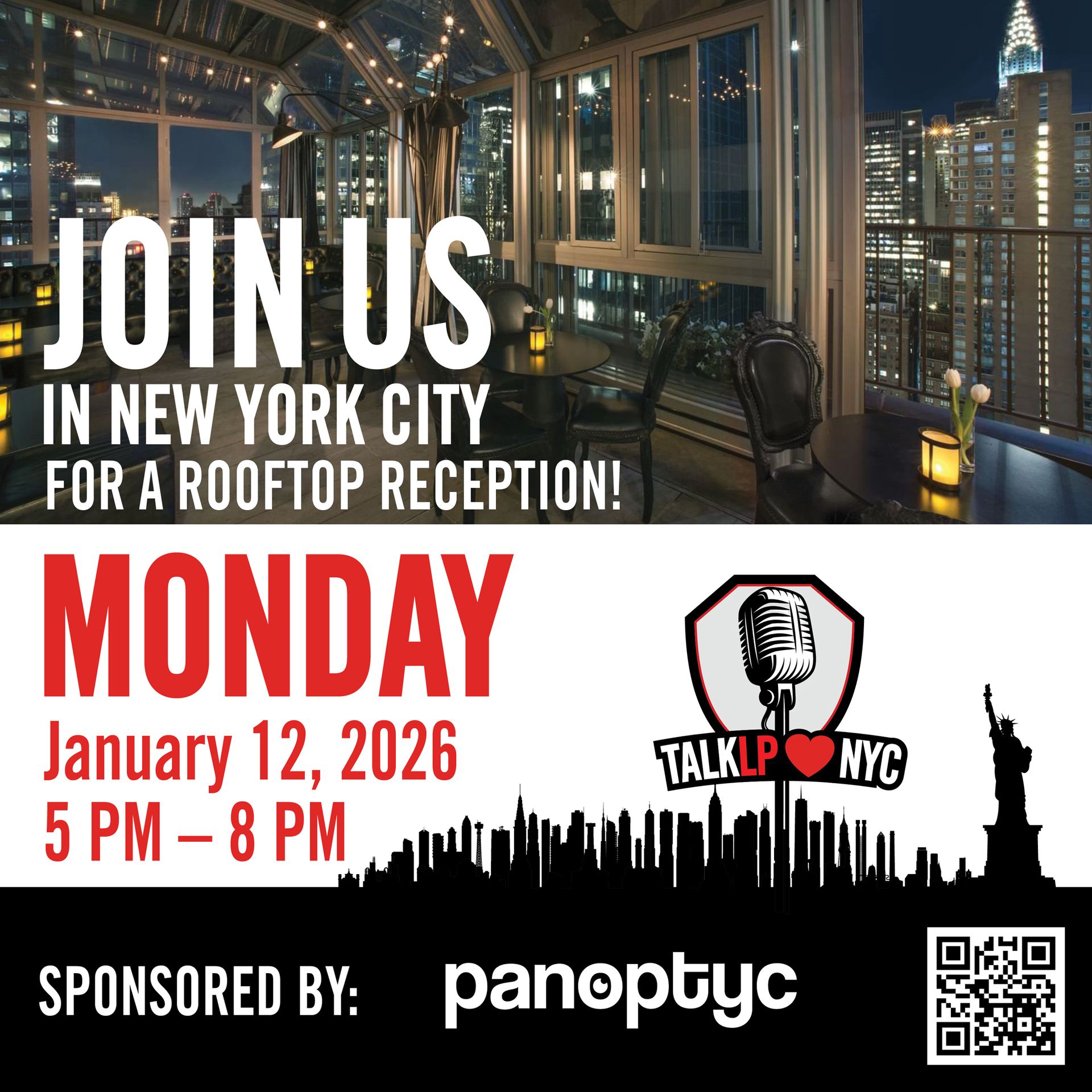 TalkLP NYC is almost here, and the guest list keeps getting better. Expect a night built for real conversations, easy networking, and a rooftop view that never disappoints. A big thank you to Panoptyc for sponsoring the event and helping bring the LP community together.
